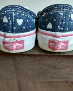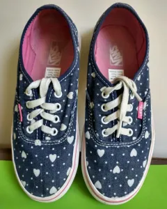 Tenis vans azul marino con corazones blancos, en buen estado, no rotos ni desgastados # 22