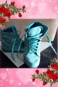 tenis de bota, verde agua, corte textil suela sintética, en perfecto estado, talla 3.5