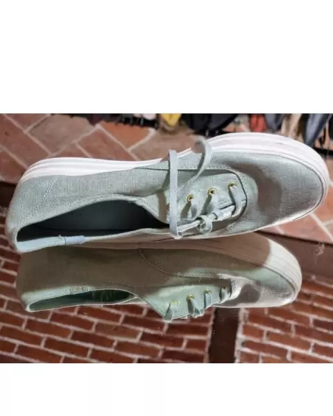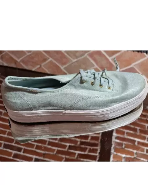 Tenis verde menta. En perfecto estado solo se usaron un par de vecesMaterial lonaEl color ez verde menta con detalles dorados