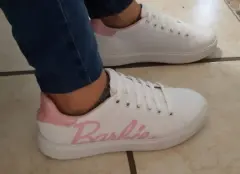Tennis casual Barbie. Tennis casual BarbieBlanco con letras rosasSintético Talla 24 (mex)Marca EMMEQueda a 24 y 24.5
