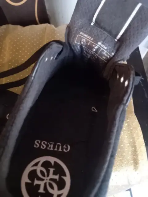 Tennis Guess negros, monogram, #23. Tennis de cintas guess, monogram, #23, se usaron 2 veces, el único detalle es q los lleve a la tintorería y me los entregaron sin una plantilla, fuera de eso están perfectos, no tengo la caja original..