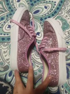 Vans authentic Glitter rosa .Talla 25, usados en buen estado, están tal cual las fotos, hacer zoom.Se envían al día siguiente (hábil), caja reciclada.