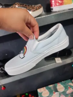 Vans de niña talla 21.5cm nuevos oritinales en su caja, color azul pastel y diseño de arcoiris.