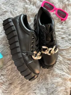 Zapatillas diseño de cadena. Zapatillas diseño de cadena casual deportiva Número 24.5Altura de la plataforma: 4cm
