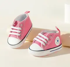 Zapatitos de lona, suela blanda, para primeros pasos. Únicos pares talla 19EU=10 MX. $200. Solo los tengo en gris y rosa