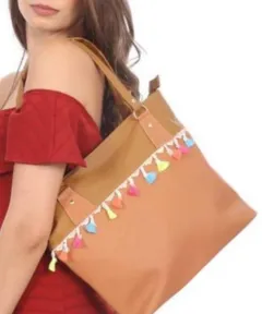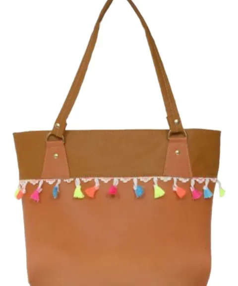 bolsa tote mexicana color camel super amplia con pom pom nueva