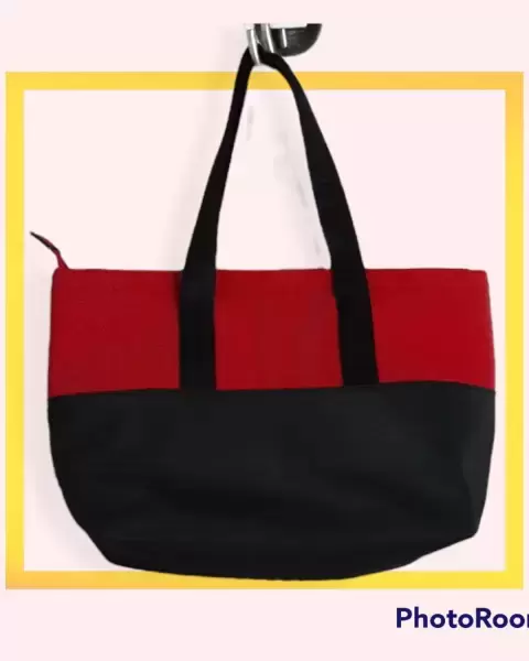 Bolsa bicolor Rojo Negro, en perfecto estadoCon alas con logotipo eran relieveInterior con bosilloMedidas de bolso sin alas 45 x 30 cm