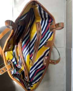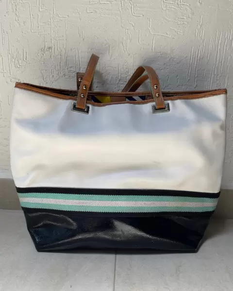 Bolsa de playa Nine West. Es una bolsa de uso, cuenta con algunos detalles, por dentro es de tela, tiene muchos compartimentos, por dentro está en buen estado.