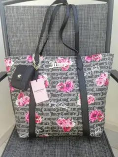 Bolsa divina Juicy Couture. Vendo bolsa Couture tipo Tote, con detalles de flores hermosas, las cuales le dan un contraste hermoso, completamente nueva