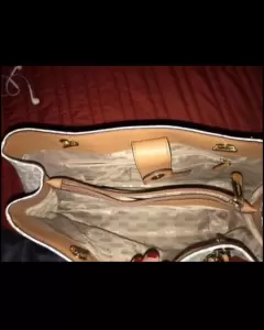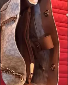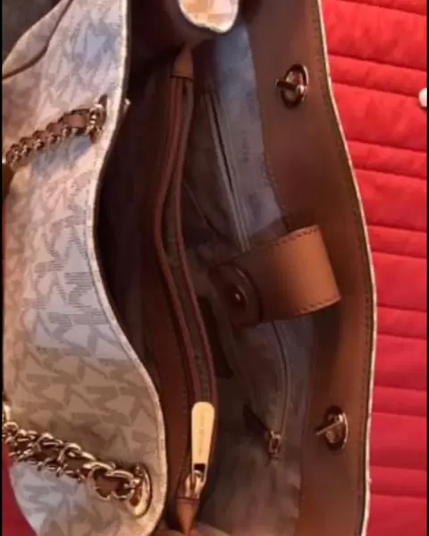 Hermosa bolsa MK mediana, con compartimentos, asas del cadena dorada, muy espaciosa, impecable.