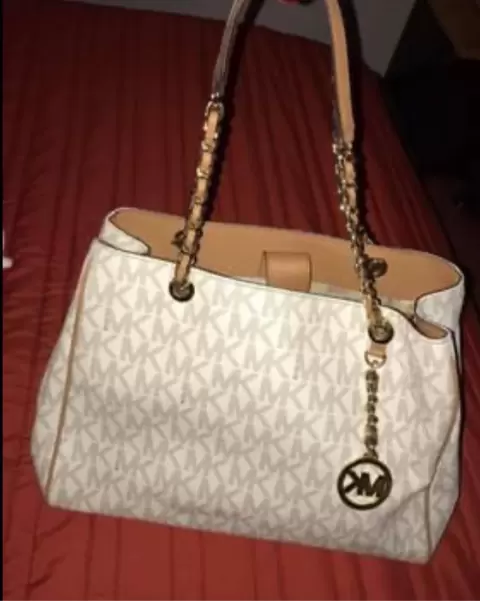 Bolsa MK. Hermosa bolsa MK mediana, con compartimentos, asas del cadena dorada, muy espaciosa, impecable.