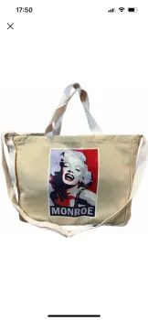 Bolso tipo tote material tipo lona.Características: Color: Beige Tipo de tirantes: Doble asaTalla del bolso: medio Tipo de Estampado: Marilyn MonroeEstilo: Casual Material: 100% poliéster