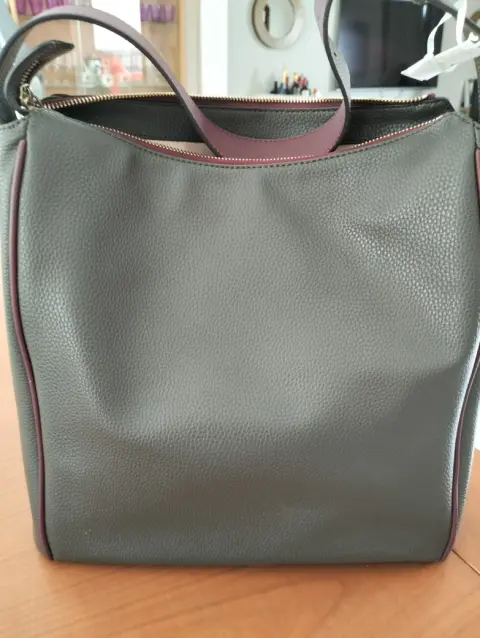 Bonita bolsa en gris con vino y logo en dorado forro rosa con espacios laterales cierre en la parte de arriba original 100% nueva cuenta con sertificado y cubre polvo