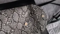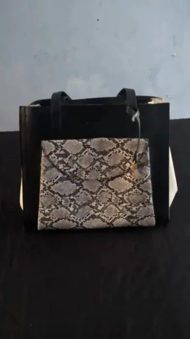 Bolsa Tote negra con animal print. Medidas 30 cm de ancho x 35 de alto, 3 compartimentos internos, broches y cierres funcionando, herrajes un poco bajo de color, espaciósa, no está rota ni desgastada.