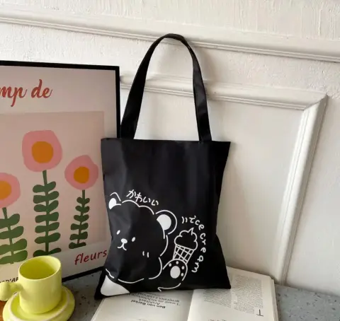 Hermosa Bolsa Totem Negra de Lona.Color negro 30x23