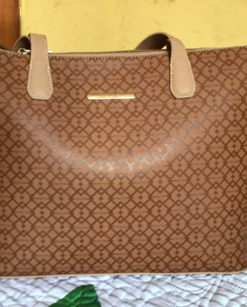 Bolsa Westies. Bolsa con Estampado de Rombos y Monograma. Café