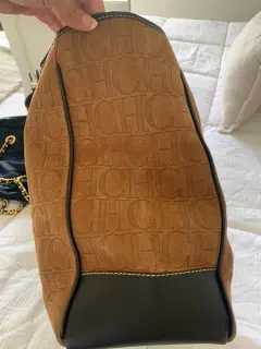 Bolso Carolina Herrera Cafe. Lindo bolso tote muy amplio piel gamuza cafe incluyo cubre polvo y certificado