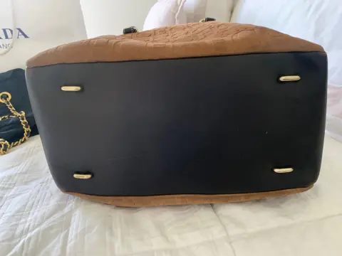 Lindo bolso tote muy amplio piel gamuza cafe incluyo cubre polvo y certificado