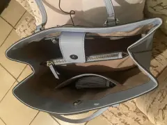 Bolso Nine west azul cielo. Bolsa satchel nine west para mujer elaborado en material vinil con aplicación lisa, estampado liso, fijación de imán y textura lisa, múltiples compartimentos y porta credenciales.