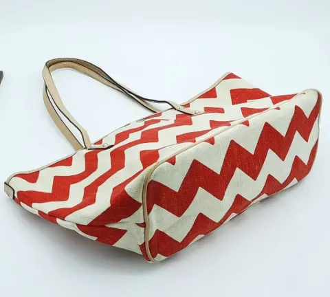 ♠️Kate Spade ♠️ Edición Ciudad de México HarmonyMaterial de algodón, yute y lino.Asas y ribete de piel de vacaEl interior tiene la misma base de chevrón, un bolsillo interior grande, dos bolsillos abiertos y un bolsillo con cremallera.Desgaste en esquinas y el interior tiene manchitas normales de uso.40 largo 25 Alto 14 fondo