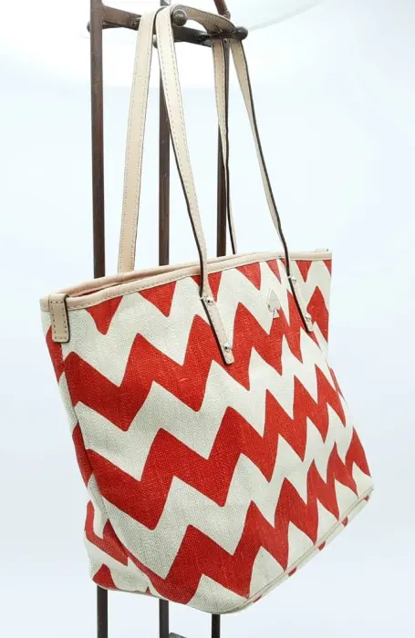Bolso tote KATE SPADE. ♠️Kate Spade ♠️ Edición Ciudad de México HarmonyMaterial de algodón, yute y lino.Asas y ribete de piel de vacaEl interior tiene la misma base de chevrón, un bolsillo interior grande, dos bolsillos abiertos y un bolsillo con cremallera.Desgaste en esquinas y el interior tiene manchitas normales de uso.40 largo 25 Alto 14 fondo