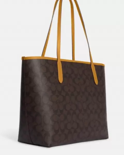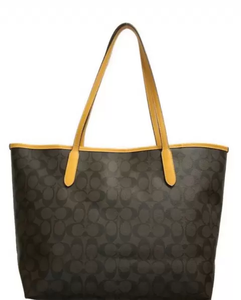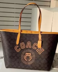 Bolsa Tote Coach bicolor con el logo en grande como aparece en las fotos