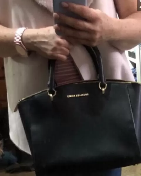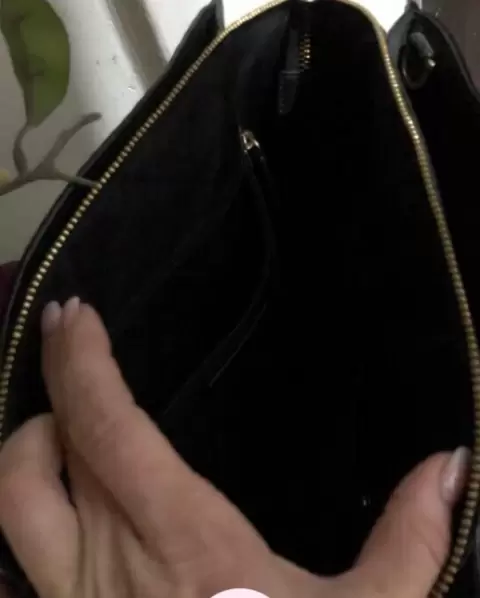 Tote hermosa, con doble cierre y además el interior donde le cabe muchísimo.Súper buen tamaño, elegante, combina con todo.Tiene patitas de la marca que ayudan a que no se maltrate el bolso.