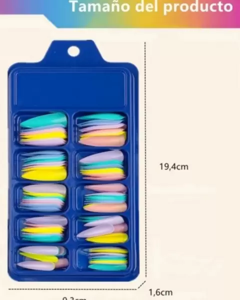 Set de 100 uñas postizas multicolor. Set de 100 uñas postizasMulticolorPuntiagudasFácil de aplicar