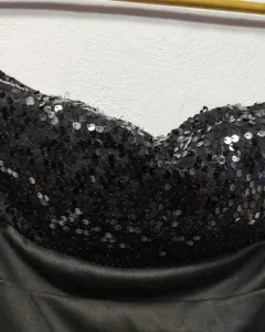 2 vestidos por $230. 1)Bonito vestido negro strapless, corto. Con detalle en lentejuelas negras a la altura del busto. Con cintilla para amarrar en la espalda2) vestido corto, color negro de encaje, con forro integrado, manga 3/4 en perfectas condiciones.*****Ambos talla chica*****