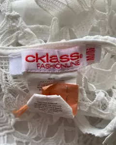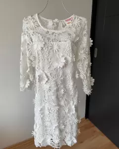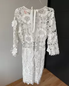 Bello vestido blanco. Bello vestido blanco de encaje de flores, súper sexy con escote en espalda