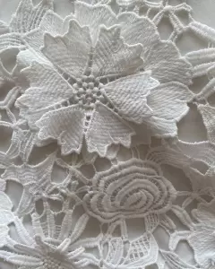 Bello vestido blanco de encaje de flores, súper sexy con escote en espalda