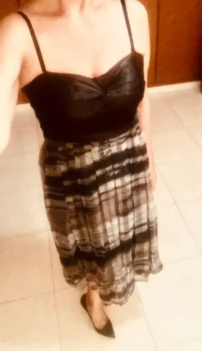 Vestido con forro pegado de arriba y holgado se abajo no tan largo ideal para una fiesta de día
