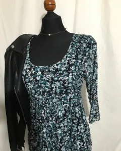 Blusón con detalle de flores. Vestido/blusón Talla LTiene detalles de encaje de flores y tiene fondo negro por dentro. Está nuevo nunca se ha usado. *Chamarra no a la venta*Manga 3/4CERO DETALLES GARANTIZADO