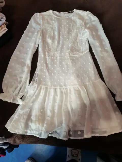 Bonito. Vestido a media pierna sin bolsas con algunos detalles en mangas y en el pecho ahora para terminar el año con un lindo vestido