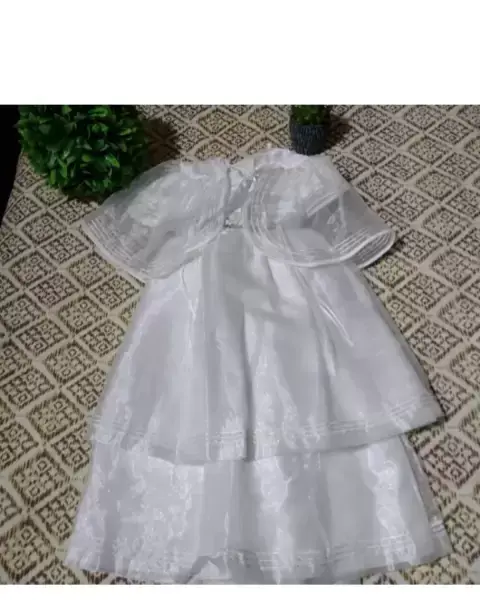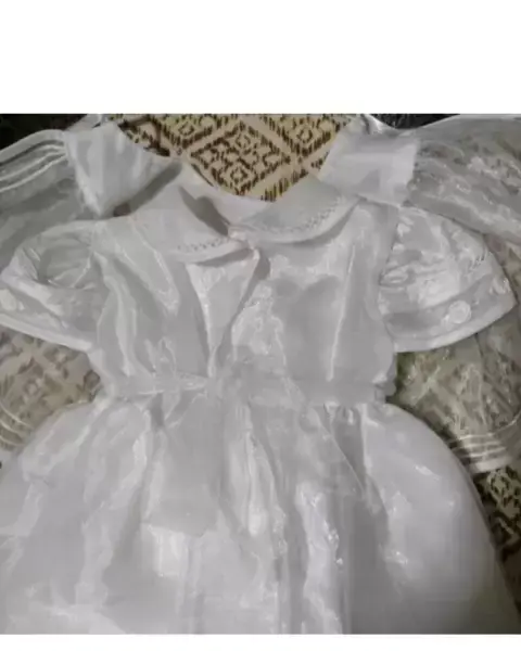 Es un Ropón muy lindo en color blanco de modelo sencillo pero muy elegante y puesto se ve hermoso, viene en talla 9-12 m está tal cual se ve en las fotos 🤗🤗🎉