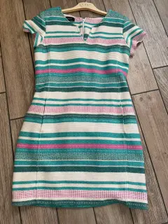 Bonito vestido!!. Vestido de rayas con bolsas laterales lleva forro 100ciento algodón. La tela es algodón, acrílico y poliamida.