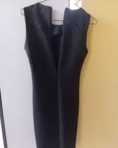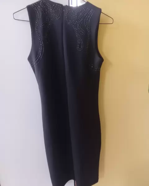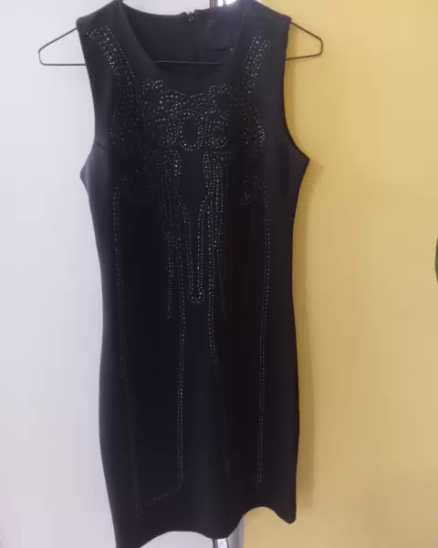 Bonito vestido de fiesta corto, color negro, talla chico, con adornos enfrente y en la espalda. Solo se usó en dos ocasiones, y está en perfectas condiciones.