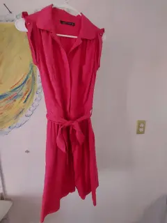 Bonito y juvenil vestido fucsia, tela fresca, con forro, botones ocultos, cinta a la cintura que da un toque lindo