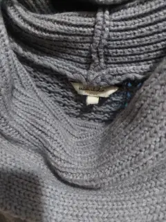 Bonito vestido gris, largo tejido, con aberturas en los hombros, muy calientito para invierno