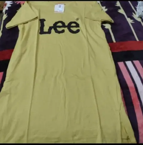 Hermoso vestido Lee , talla med , color mostaza , manga corta . Ideal para usar con tenis.