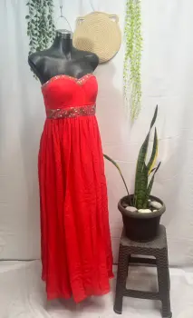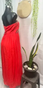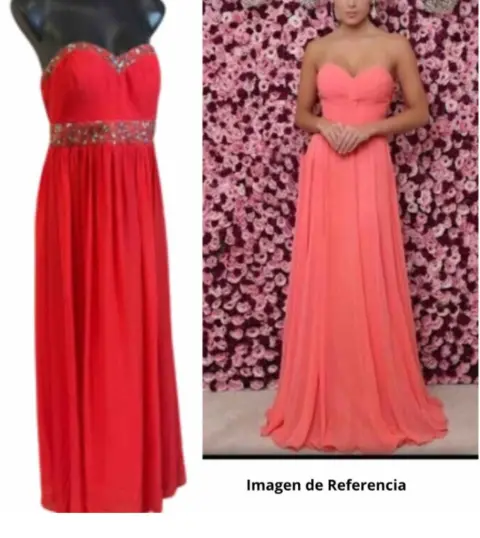 Hermoso vestido de fiesta color coral, con bonita pedrería en la parte de arriba, forma de corsete arriba, arma súper bonito, (Imagen de referencia ),tiene una pequeña marchita foto 4.marca NINA FERRE, talla 11, ☘️medidas, 76 pecho y espalda , largo 1.30, ☘️🌸A064.🌸🎁Incluye Regalito Sorpresa Gratis 🎁