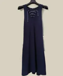 Vestido casual, de algodón, color azul marino, sin mangas. El detalle, el cordón que se ve desgastado pero se lo puedes cambiar (foto 4). Y la tela tiene un poquito de bolitas, se ve en las foto 5. No tiene muchas y no se nota.