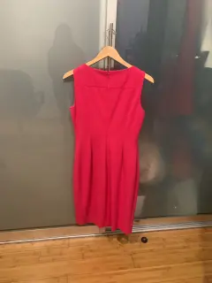 Vestido recto color rosa fucsia sin mangas. Detalle drapeado. Calvin Klein. Una sola puesta. Talla 6. Elegante. Ideal para toda ocasión.