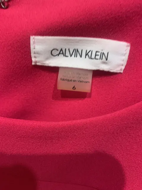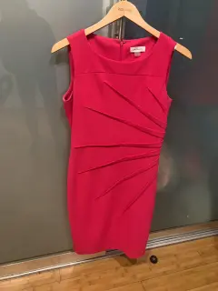Calvin Klein elegante vestido toda ocasión. Vestido recto color rosa fucsia sin mangas. Detalle drapeado. Calvin Klein. Una sola puesta. Talla 6. Elegante. Ideal para toda ocasión.