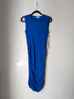 Vestido hermoso Calvin Klein auténtico completamente nuevo con etiquetas hace hermosa figura. Con tiras para hacer efecto fruncido a los lados.Talla 4Nuevo con etiquetas.