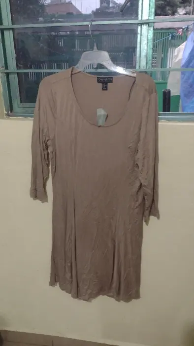 Camisón café talla XXl. Camisón color café tela holgada, queda a la rodilla, cuello redondo, manga larga.