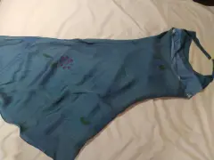 Hermoso, azul zafiro, asimétrico en la parte baja del vestido. Tipo halter . Excelente estado.