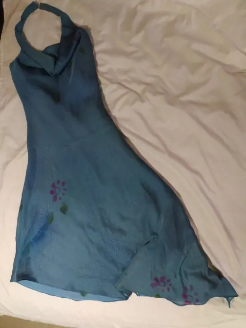 Casual y fresco. Hermoso, azul zafiro, asimétrico en la parte baja del vestido. Tipo halter . Excelente estado.
