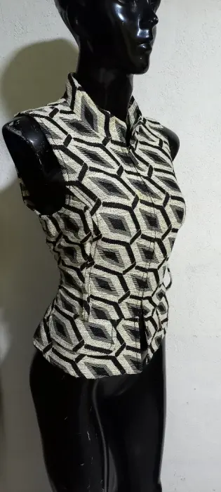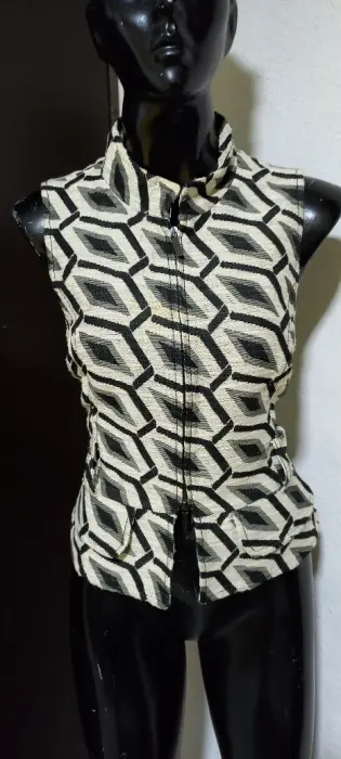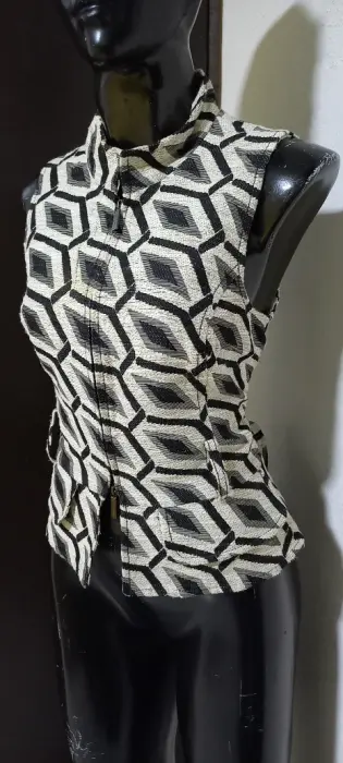 Chaleco acinturado con cierre yute. Gracias por tu visita ..En esta ocasión te traemos:..................................................................................TALLA sMARCA ROBERTO VERINOCOLOR SICODELICOSTRECH NOTELA YUTEMADE IN PORTUGALFORRO MEDIDAS HOMBRO 33 CM AXILA 44 CM CINTURA 38 CM CADERA 45 CM LARGO 54 CM Las medidas son de lado a lado de la prenda
