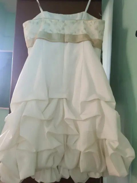Vestido corto, talla mediana, con lindo bordado dorado en el pecho. Y un pequeño monito.Se uso solo para un evento. Está en excelentes condiciones